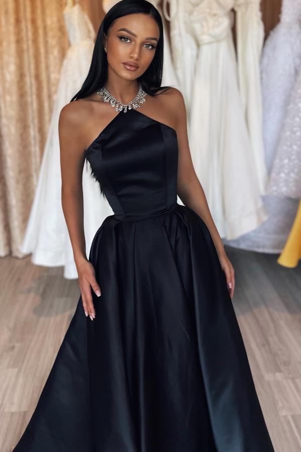 Robes de soirée simples longues noires | Robes de bal bon marché en ligne